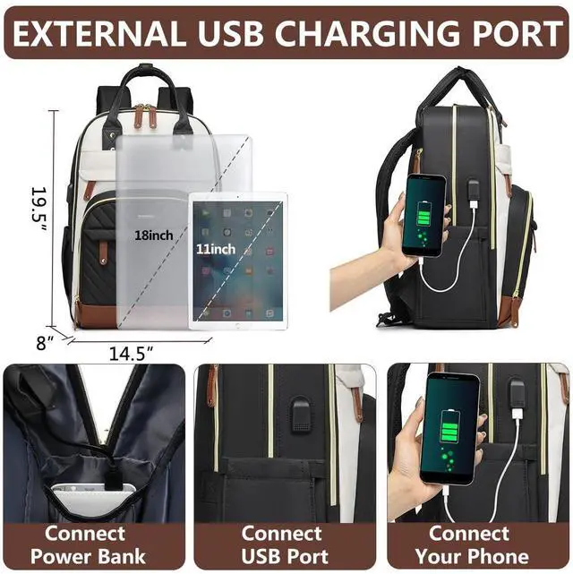 Work Backpacks with USB Charging Port- The college students back pack have an extern
