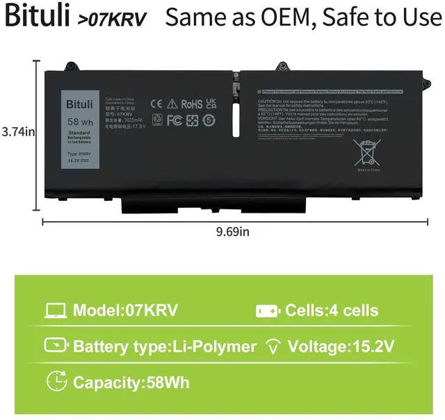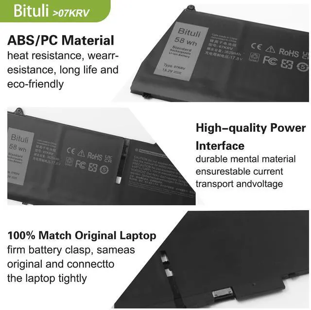 Replacement Battery Type07KRV Battery Type: lithium_ion Voltage: 15.2V Capacity: 58WH 3630mAh ; Cells: 4-cell; Color: Black, This battery provide the same battery life as the original,We are a professional laptop battery manufacturer,We only provide the best quality batteries to ensure the best possible buying experience for our customers
