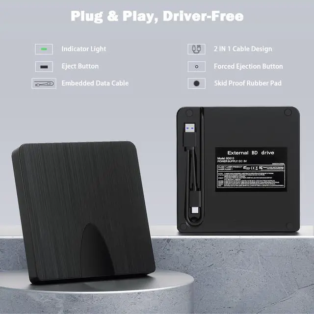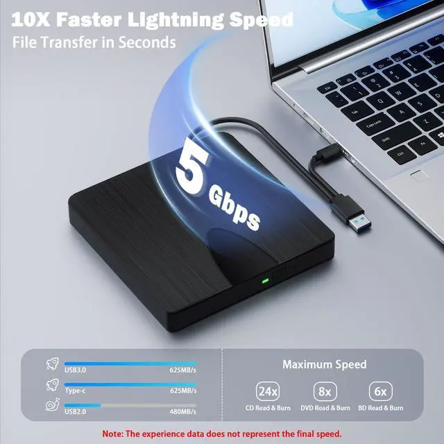 High Performance: The blu ray drive has impressive high-performance capabilities. Its cutting-edge high-speed 3.0 interface and Type-C interface exhibit exceptional error correction capabilities, impact resistance, minimal sound, and low power consumption.Blu ray burner external can read CDs at speeds of up to 24x, DVDs at up to 8x, and BDs at up to 6x. Additionally, it supports burning normal CDs and DVDs in sizes of 8.5GB, 4.7GB, and 700MB, as well as 3D discs.
