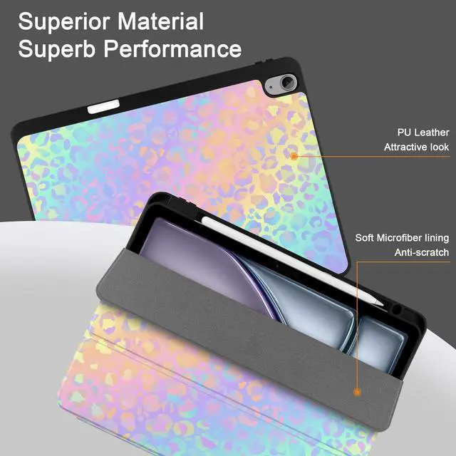 DONGKE for iPad Air 13 Inch Case M3 2025, M2 2024 - [Built-in Pencil Holder] Slim Trifold Stand Shockproof Protective Cover with Soft TPU Back Support Auto Sleep/Wake - Colorful Leopard