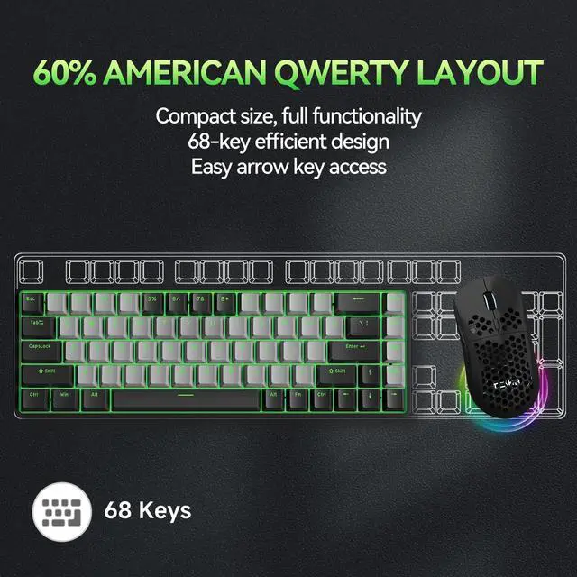 • Compact 65% LayoutSpace-saving 65% design retains arrow keys and essential functions. Ideal for gaming, office, and easy to carry on the go.