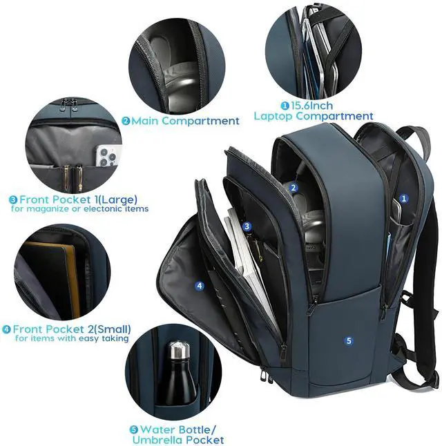 Waterproof polyester: This waterproof polyester backpack keeps your belongings dry during rainy commutes or outdoor activities. The reinforced bottom layer is scratch-resistant, suitable for various environments.