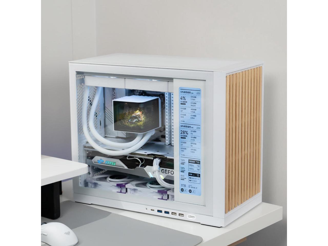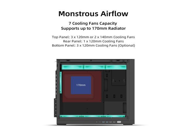 - AIO & Air-Cooling Compatibility - Supports 360mm AIO at top/bottom positions, rear panel supports 120mm AIO. Accommodates up to 7x120mm fans (Top: 3 x 120mm, Rear: 1x 120mm, Bottom: 3x 120mm) with front/bottom intake airflow design. Efficient cooling per lab tests: CPU 88°C/GPU 64°C (24°C Room Temp, 250W without Undervolting, 58% fan speed)