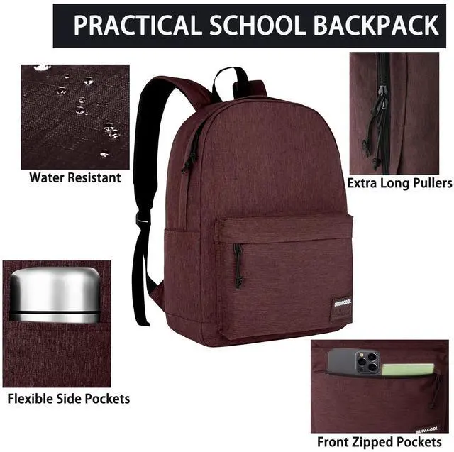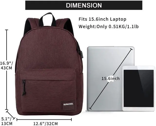SUPACOOL Casual Laptop Backpack for Men and Women, Backpack for College, USB Charging Port, Lightweight Pack Back (Coffee)