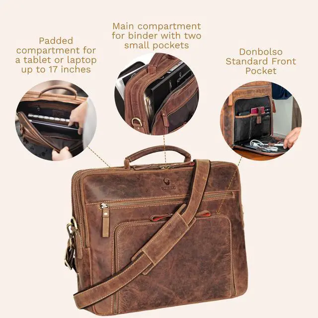 DONBOLSO San Francisco Laptop Bag - 17-Inch Handcrafted Leather Messenger Bag for Men and Women - Leather Shoulder Bag with Adjustable Strap for Office, Travel, Uni, or Business Use - Vintage Brown