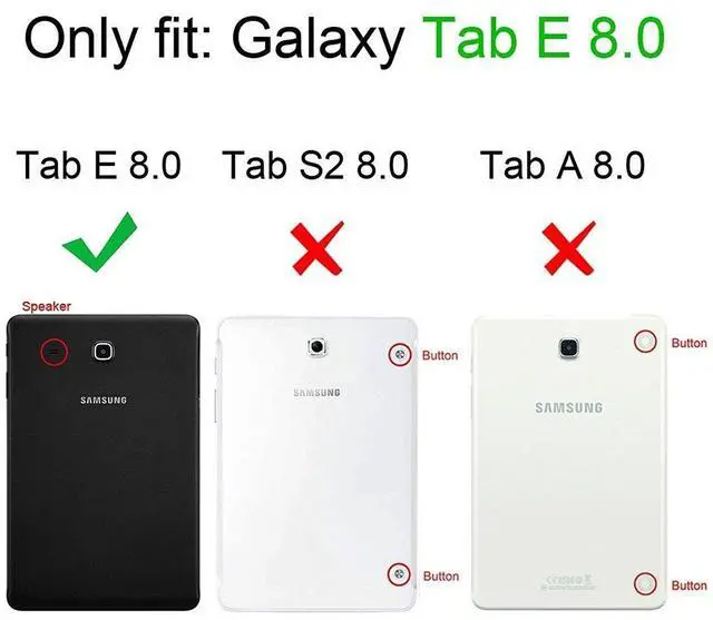 Compatibility--This tablet case but only for Samsung Galaxy Tab E 8.0 SM-T375/ SM-T377/ SM-T378 , NOT fit other models.Please confirm the product before purchase.
