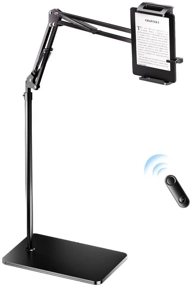 UNIBITRI Floor Stand for Kindle with Remote Page Turner, Holder Stand for Reading in Bed with Clicker for Kindle Paperwhite, Oasis, Tablet, iPhone and More 4.7 -11 inch, Black Remote