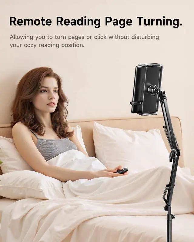 Effortless Page Navigation with Remote Control: Our product includes a remote page turner, allowing you to flip through pages or click without changing your comfortable reading posture. This feature sets our stand apart, offering you unparalleled convenience.