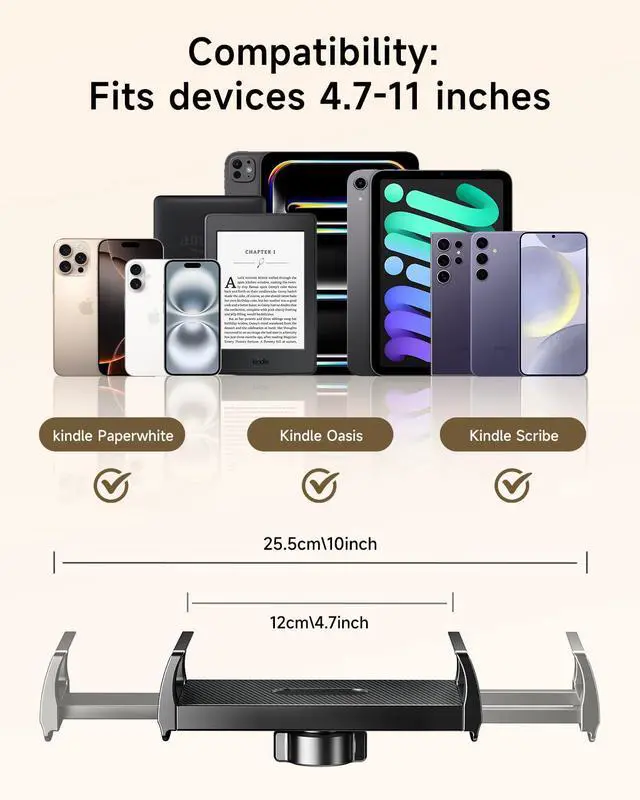 Universal Compatibility with Adjustable Tablet Floor Stand: This versatile tablet floor stand caters to a wide range of devices 4.7-11 inches, widely compatible kindle, tablets, and iPhone. Its robust design ensures your device is securely held in place.