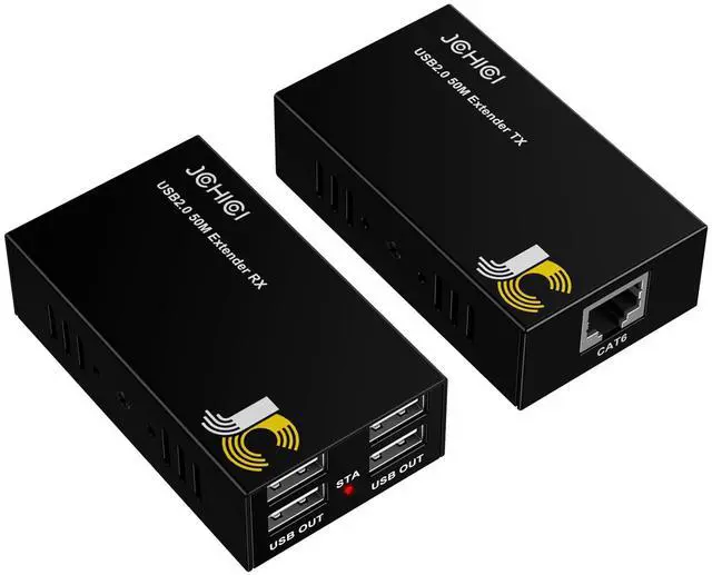USB Extender Over Cat6/7 Up to165ft/50M, JCHICI 4 USB 2.0 Ports, Plug and Play, No Driver, POC, Keyboard and Mouse Over Ethernet