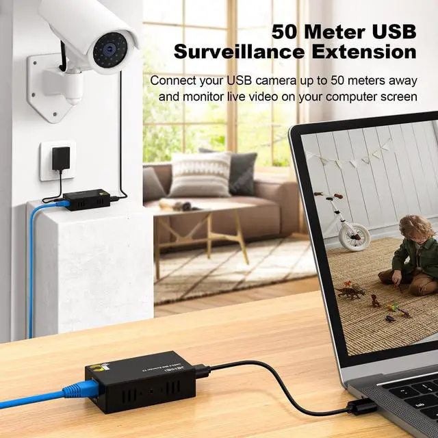 USB over Cat6/7 ExtenderUSB Powered Extender supports high speed USB 2.0 over a single Cat6 cable up to 165 feet (50m) ; supports any OS including Windows, Android, MacOS, Linux, etc.
