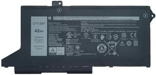 EPYOBW WY9DX Laptop Battery 42Wh 3-Cell 11.4V Compatible with Dell Latitude 14 5420 / Latitude 15 5520 / Precision 15 3560 Series RJ40G 005R42 01K2CF 1K2CF 075X16 75X16 0WK3F1 WK3F1 M3KCN 0M3KCN