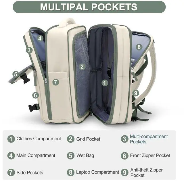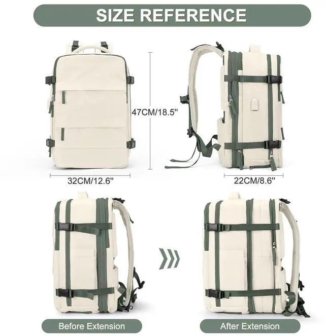 Casual Backpack Traveling Backpack, A-beige With Green, Expandable, Travel Backpacks