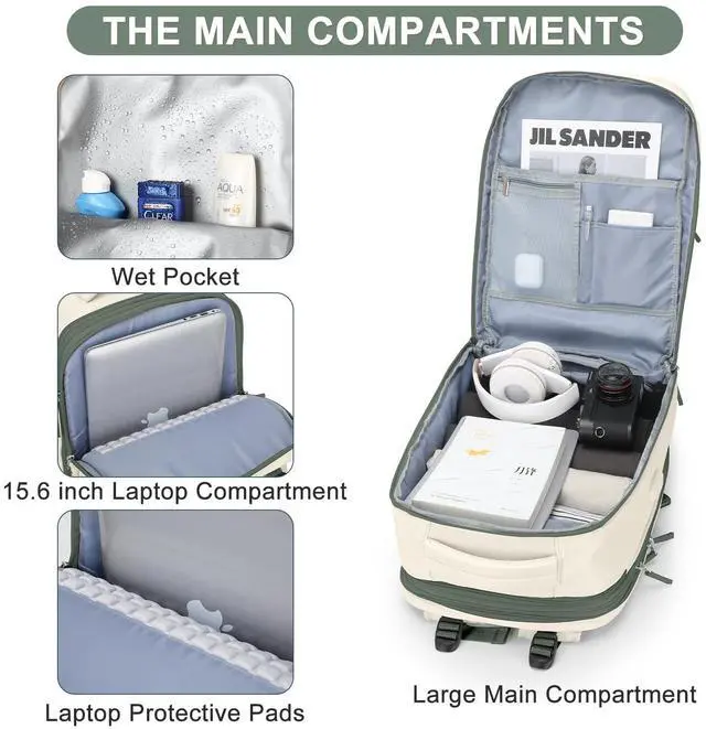 Extra Large Expandable DesignThe everyday clothing pockets can hold 6-8 lightweight tops or pants. This travel bag also features an expandable capacity space for placing more clothes, along with clothing straps, catering to the needs of a family's short trips. The separate laptop compartment can accommodate a maximum 15.6" laptop, meeting your work or daily leisure requirements.