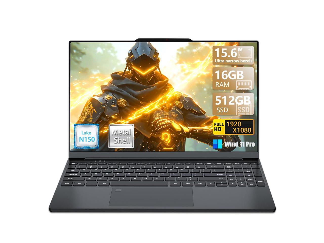 2025 Gaming Laptop,Narrow bezel 15.6 Inch Laptop Computer with N150 Processor(Up to 3.6GHz) 16GB RAM 512GB SSD FHD Premium Laptop,WIFI 5,BT 4.2,Fingerprint unlocking,Backlit Keyboard, Win 11 Pro
