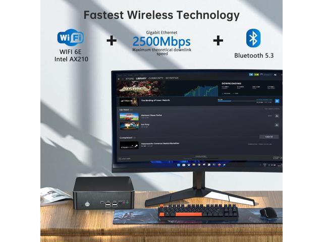Thdeukoty Mini PC with Core i9-9880H 8C/16T up to 4.8GHz, 64G DDR4 2T SSD, Desktop Computer Windows 11 Pro, DP*1, HDMI*2 4K@60Hz Triple Display, Optical, Dual LAN, WiFi6E/BT5.3,VESA