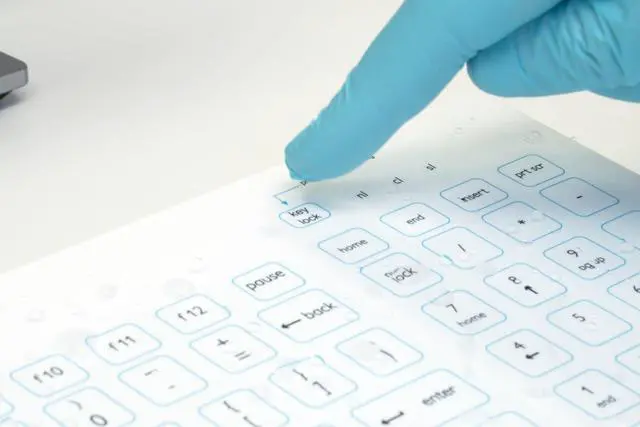 This keyboard has a completely flat silicone top layer so that bacteria, viruses and other germs cannot accumulate between the keys.