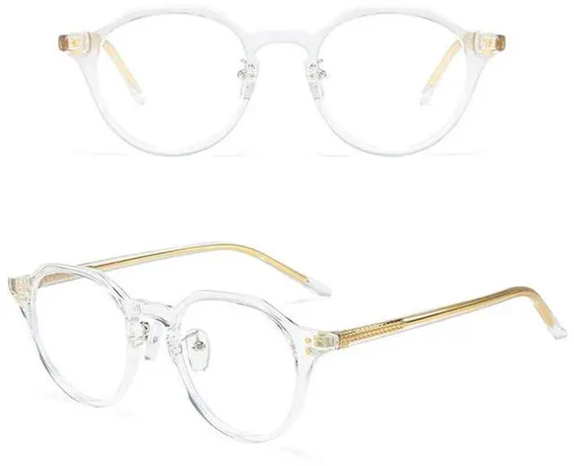 BETSION Blue Light Blocking Men Women Glasses Vintage Acetate Anti Eyeglass Frames Full Rim Myopia Unisex (Crystal)