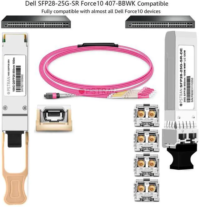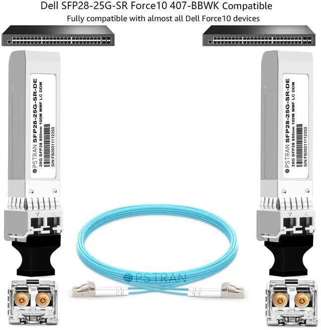 OPSTRAN 25GBASE-SR SFP28 Optical Transceiver Module Compatible with Dell SFP28-25G-SR Dell Force10 407-BBWK 25G SFP28 850nm 100m DOM Duplex LC MMF