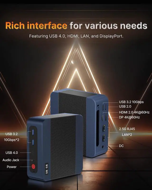 32GB DDR5 RAM & 1TB PCIe 4.0 SSDP8 mini pc 32gb ram is pre-installed with 32GB of high-speed DDR5 RAM (2x16GB) and a massive 1TB PCIe 4.0 SSD right out of the box. This means instant load times for your large projects and seamless switching between demanding apps. This mini pc ddr5 can upgrade down the line with two available DDR5 slots and dua