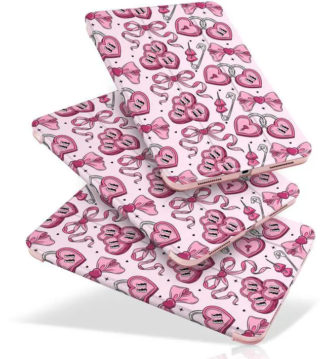 MecBevia Case for iPad (A16) 11th Generation 11 Inch (2025), iPad 10th Generation 10.9 Inch (2022), Hard PC Back Cover, Auto Wake/Sleep, Pink Love Ribbon