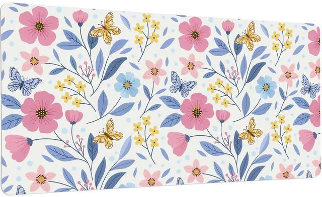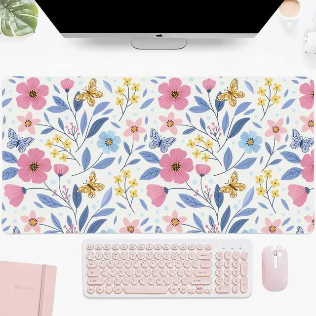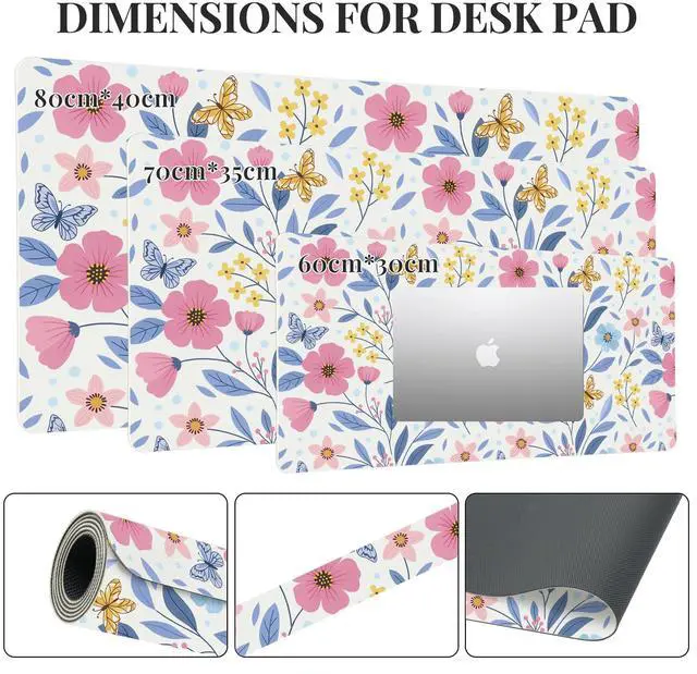 Idocolors Colorful Floral Desk Mat, Cute Extended Gaming Keyboard Mouse Pad, Large Office Desk Cover Mat Pad Deskmat, Non-Slip Leather Home Office Desk Mat Protector 31.5" × 15.7"