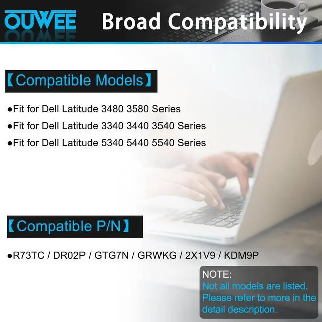 OUWEE R73TC DR02P Laptop Battery Compatible with Dell Latitude 3580 3340 3440 3480 3540 5340 5540 5440 Series 2X1V9 GTG7N GRWKG KDM9P 54Wh 4623mAh 11.4V