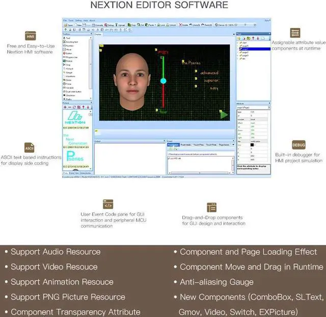 -Compared with Nextion Basic & Nextion Enhanced, Nextion Intelligent display has more powerful hardware in terms of MCU, Flash storage and SRAM. Audio, video and animation play functions enrich your project HMI interaction.