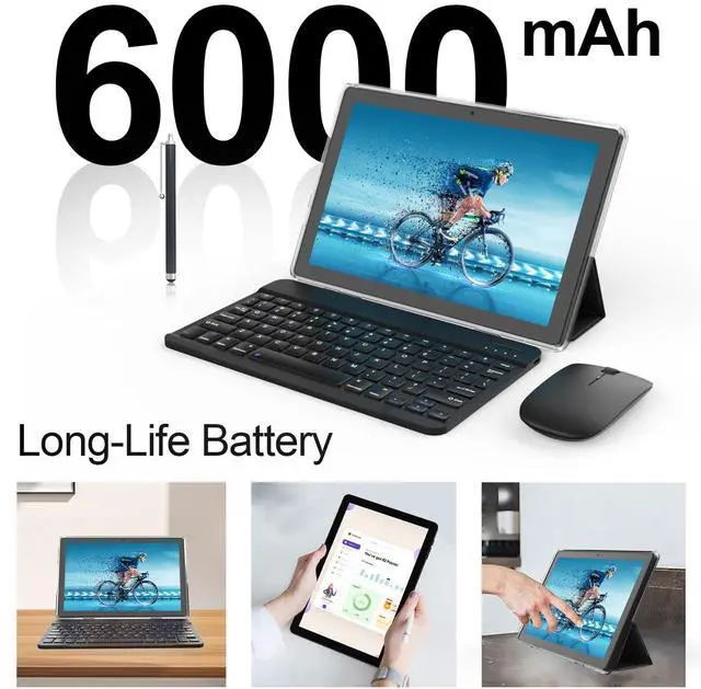Nyxolaria Tablet 10.1I nch Android 15.0, RAM 20GB(4+16Expand)+ROM 128GB, 6000mAh Battery, 2+8MP Dual Camera, 1280*800 IPS HD Touch Screen Tab PC Set with Keyboard+Mouse+Protective Case+Stylus (Black)