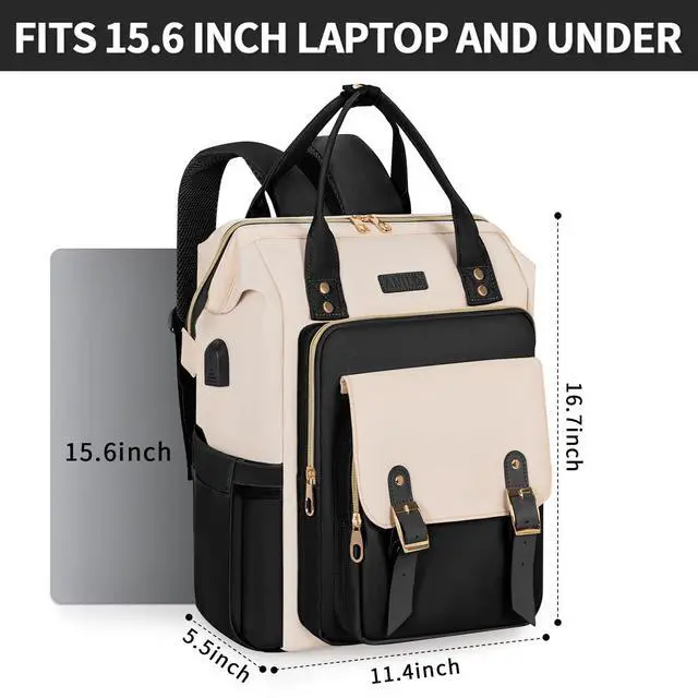 ANILD Travel Laptop Backpack for Women, 15.6 Inch Work Backpack with USB Charging and Port Luggage Strap, Airline Approved Business Work Bag for Nurse College Teacher