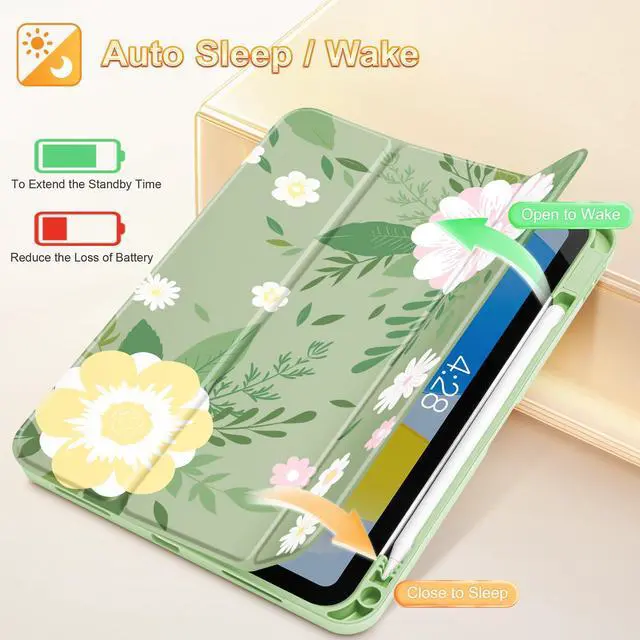 Tuiklol Case for iPad 11 inch (A16 Chip) 2025 Generation 11th / iPad 10.9 inch 2022 10th Gen,Slim Stand Hard Case Pencil Holder with TPU Back Cover & Trifold Stand & Auto Wake/Sleep, Flowers Green