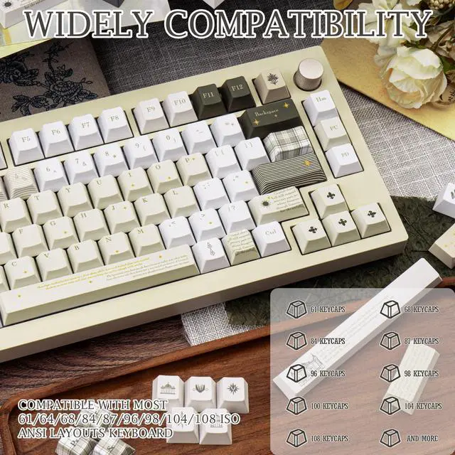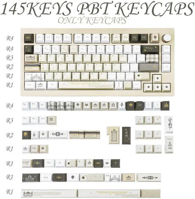 High Compatibility: 145 keys keycap set fits most 61/64/68/84/75/87/96/98/104/108 ANSI US layout mechanical keyboards, fully compatible with MX switches