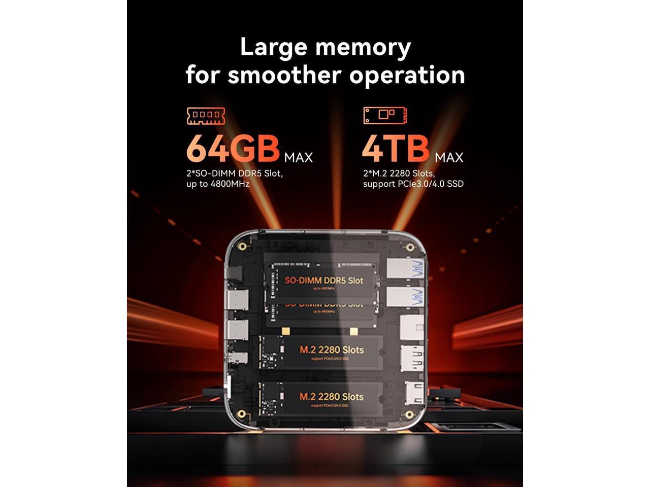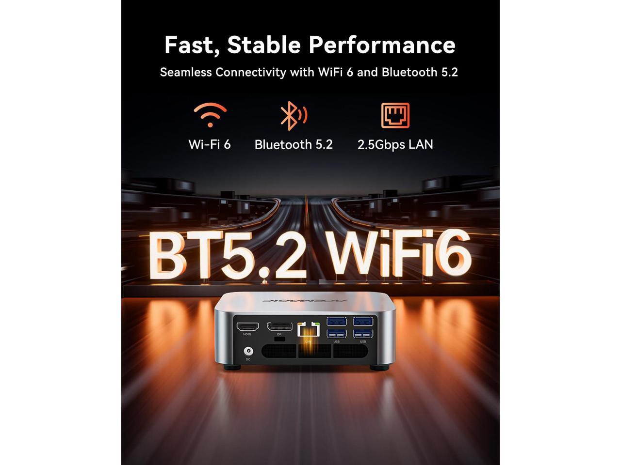- Versatile 5xUSB3.2 Ports & High-Speed NetworkFeaturing 5×USB3.2 and a Gen 2 Type-C port with up to 10Gbps transfer speed, this mini PC lets you move large files in seconds for higher productivity. The Type-C port also supports D