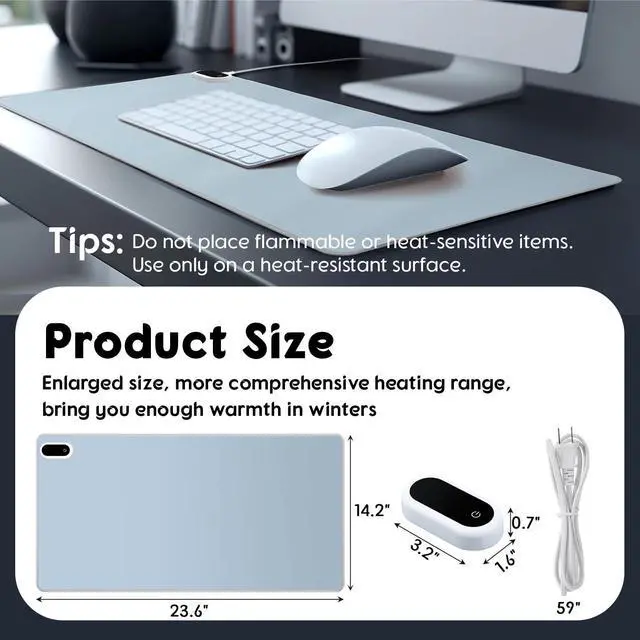 The large size measuring 23.6" x 14.2" provides ample space for both your mouse and keyboard, giving you plenty of room to maneuver while keeping your hands warm.