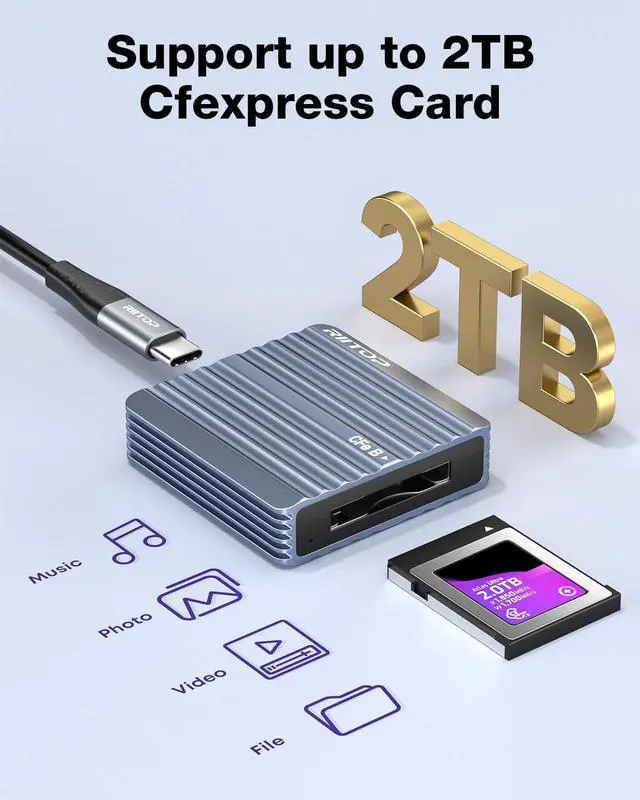 [Designed for CFexpress Card] RIITOP CFexpress card reader is specially designed for CFexpress (Type B) memory Cards. It's more convenient for those who love photography or videography and own Cameras with CFexpress Type B card