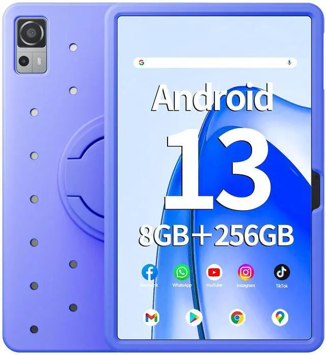 • Naclud 12 Inch Tablet 8GB RAM 256GB ROM, Android 13 Tablet with Decorative Perforated Case, Octa-Core 2.0Ghz Processor, 2000 * 1200 FHD Screen, 5MP+13MP Camera, 8000mAh, GPS, WiFi, Bluetooth (Blue)