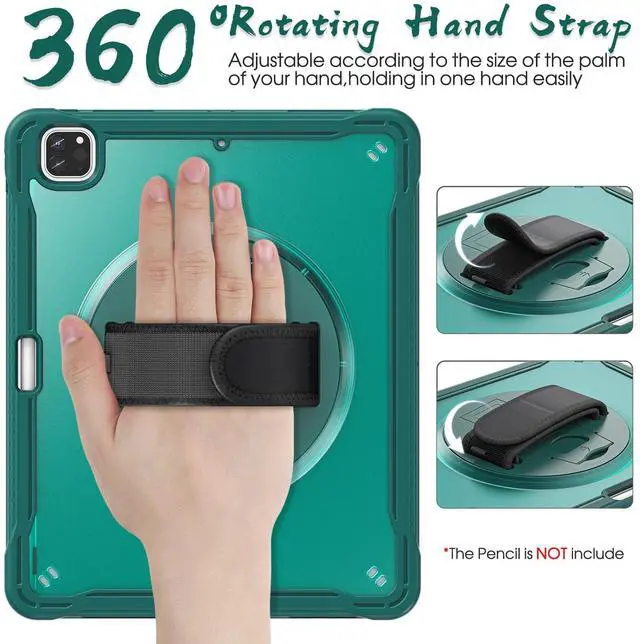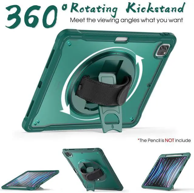 BRAECNstock case for iPad Air 13 Inch(M3/M2) 2025/2024 & Pro 12.9 inch 6th/5th/4th/3rd Generation 2022/2021/2020/2018 Cover with Screen Protector, Pencil Holder, 360°Rotate Stand, Midnight Green