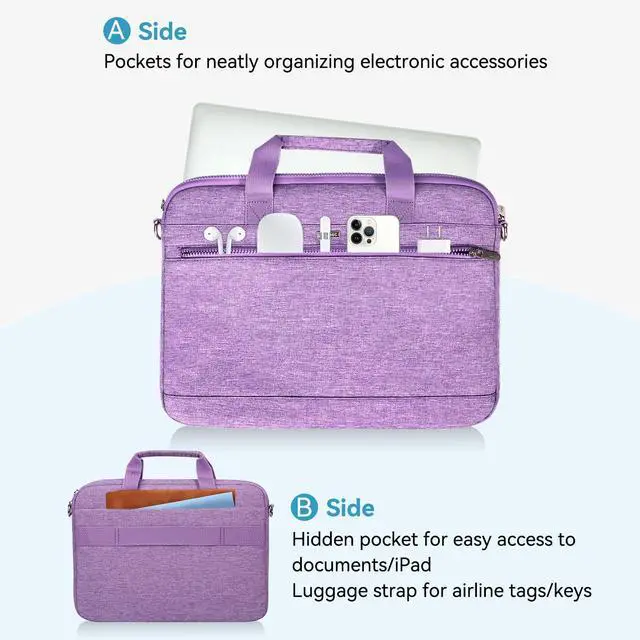 LANDICI 360° Protective Laptop Bag Case 15.6 -16 Inch with Shoulder Strap, Waterproof Computer Sleeve Cover for MacBook Pro 16, Acer HP Lenovo Dell ASUS Laptop, Slim Briefcase for Women, Purple