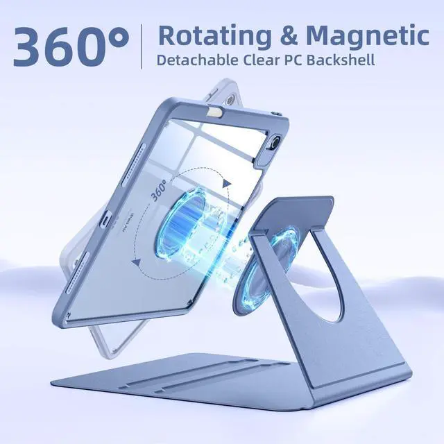 Generation(2024/2022/2021/2020/2018)(Model: A2228/A2068/A2230/A2231/A2377/A2459/A2301/A2460/ A2759/A2435/A2761/A2762). NOT compatible with iPad Pro 11 inch M4/M5 2024/2025 release ^^ 360 Rotating & Detachable Strong Magnetic Back360 rotating design, which can stably support your iPad whether in a portrait or landscape stand mode in various angles with two anti-slip deep grooves. Designed with a detachable clear backshell, you can remove the cover if you don't need it, very flexible and convenient ^^ Build-in Pencil Holder & Support Pencil Pro / Apple Pencil 2nd Gen Wireless ChargingThis case has a slot for Apple Pencil Pro / Apple Pencil 2nd generation. You can carry your pen with your device wherever you go without worrying about losing them. It's also easy to remove the