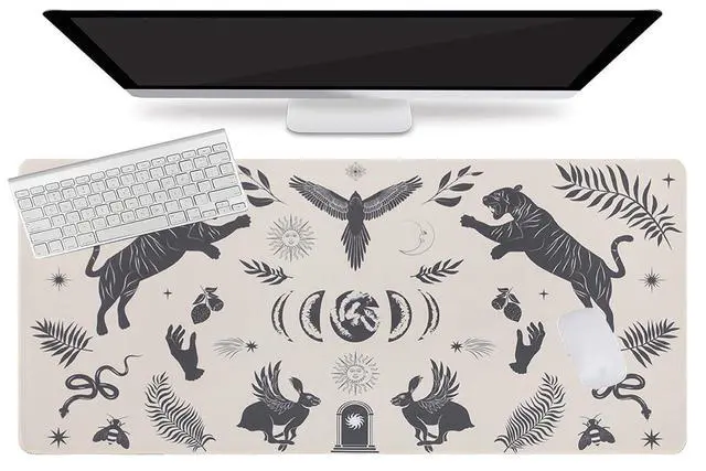 Modern Astrology Aesthetic Design: The boho wild animals desk pad mat with exquisite stitched edges for wear resistance and durability, adding a touch of elegance to your desktop. For women who love mythology creature plant and astrology element ^^ Large Desk