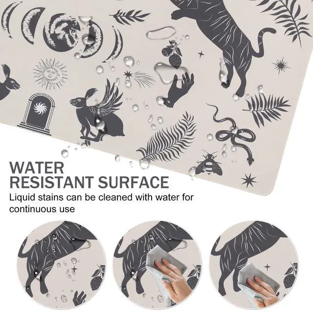 Clean: Abstract wild animals mythology large desk pad equipped with a waterproof coating, vintage desk matt for desktop resists liquid spills. The computer mat for desk is washable: hand wash or machine wash. Water resistant and heat resistant material makes this gaming mouse pad easy to clean. Simply wipe the surface of the desk mouse pad with a wet cloth. The desk cover protector will air dry quickly in its natural state and is ready to use after air drying