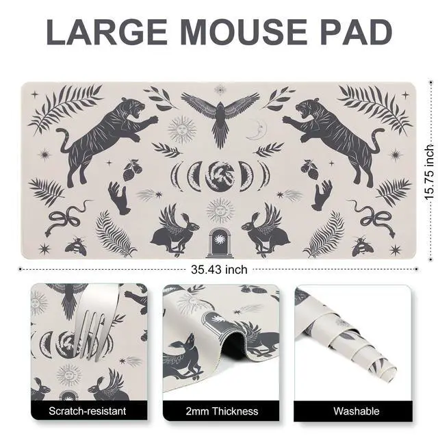 Pad Size: XXL mouse pad measures 35.4" x 15.7", this gothic astrology tiger desktop mat provides ample space for your mouse, gaming keyboard, and other desktop essentials. Its large size of desk cover mat keeps your workspace neat and organized, perfect for both gaming and office use ^^