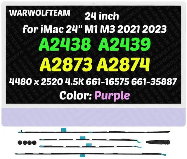 WARWOLFTEAM Compatible with iMac A2438 A2439 A2873 A2874 M1 M3 2021 2023 All in One Retina EMC 3663 3664 8206 8207 24" 4.5K LCD Display Screen Assembly LG204A-215(661-16575 661-35887 Purple)