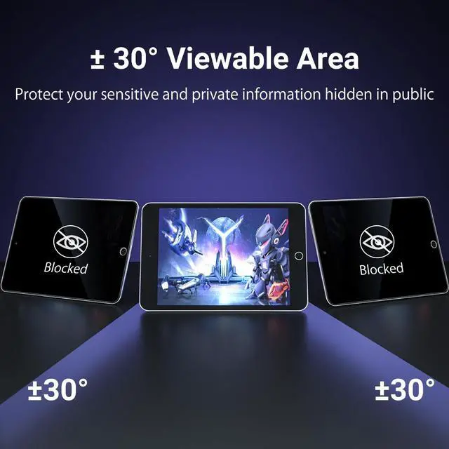 Mini 5: To ensure that only the +-30 angle directly in front of the screen is visible, we have corrected the angle of the ipad mini 5 privacy screen protector more than 9000 times to ensure that other angles of view are not visible. By getting the ZOEGAA ipad mini 5th generation privacy screen protector, you can ensure that your computer data privacy is not peeked. ^^ Protect