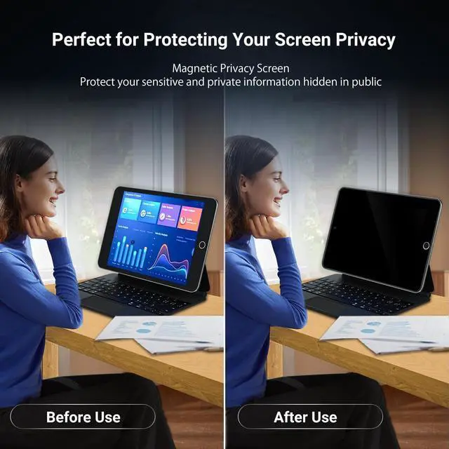 Screen also Eyes: The high-quality filter layer of the ipad mini 5 privacy screen protector can reduce 95% blue light and 92% ultraviolet radiation, thereby reducing eye fatigue and fatigue caused by long-term exposure to blue light and protecting your eyes. At the same time, the scratch resistant layer of the ipad mini 5th generation privacy screen protector can avoid scratches in daily use and protect your screen.