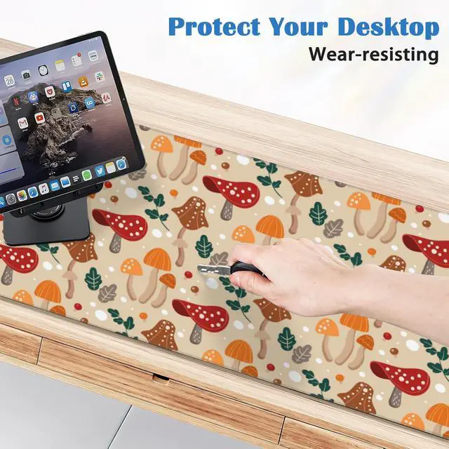 Environmental, and safe to use. ^^ Soft and Non-slip Rubber BaseThe soft and dense non-skid nature rubber base keeps the pad firmly in place, it can effectively prevent the mouse and keyboard from sliding and moving for stable operation. The desk pad is flexible enough to be rolled up for easy transport, to move around so you can work or game wherever you want. ^^ Suitable for many occasionsLarge enough size can protect the desktop from abrasion and liquid spills. Works well on all types of desks including wood, glass, leather, metal, marble desk and more.