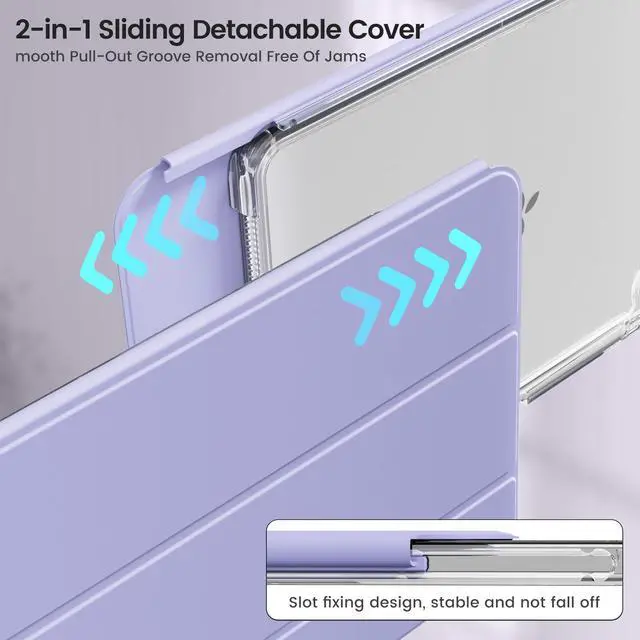 Detachable Cover: The iPad 11th generation case features a smooth sliding track design at the bottom and left side, allowing the slim Transparent back cover to be detachable from the front leather cover. This enables convenient operation without the cover and offers versatile usage experiences.