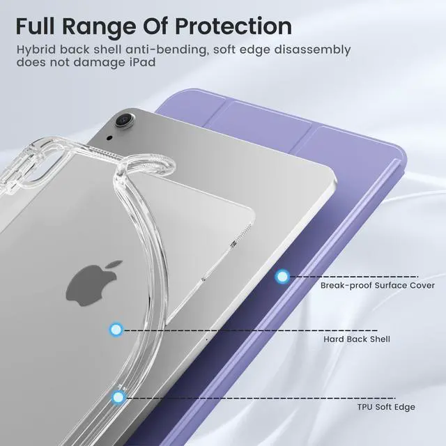 Full Clear Hard Back: The transparent back cover is made of acrylic PC anti-bending + soft TPU anti-drop frame, featuring scratch resistance, wear resistance, long-lasting durability, and anti-yellowing properties. This iPad a16 hybrid case showcases the device's original color through its crystal back shell, and you can also customize it with stickers. ^^ With Holder Pencil & Auto Wake/Sleep: This iPad a16 case has the pen slot that wraps the pen tightly so it won't get lost and the pen can be charged without barriers in the pen slot. (Supports iPad Pencil 1 gen); The screen of ipad 11th/10th gen case lights up in seconds when you turn it on, and when you turn it off, the screen quickly enters the sleep mode to save power.