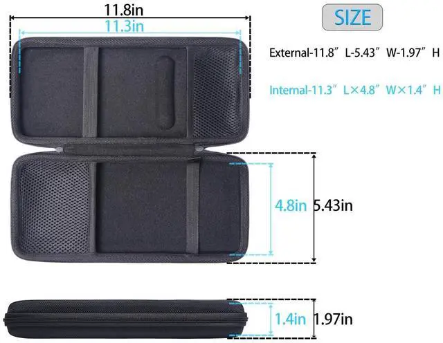 Inside size: Lenth 11.3 inch 285mm Width 4.8 inch 120mm Height 1.4 inch 36mm