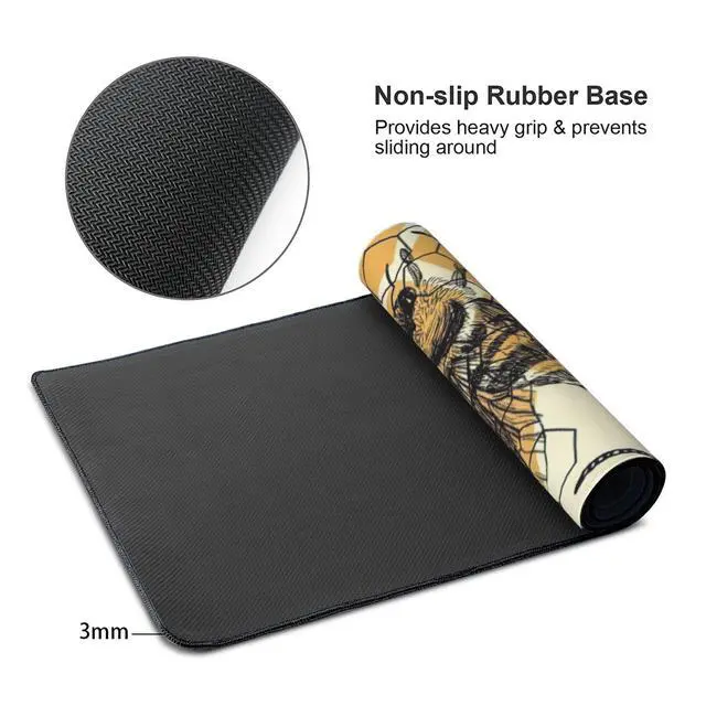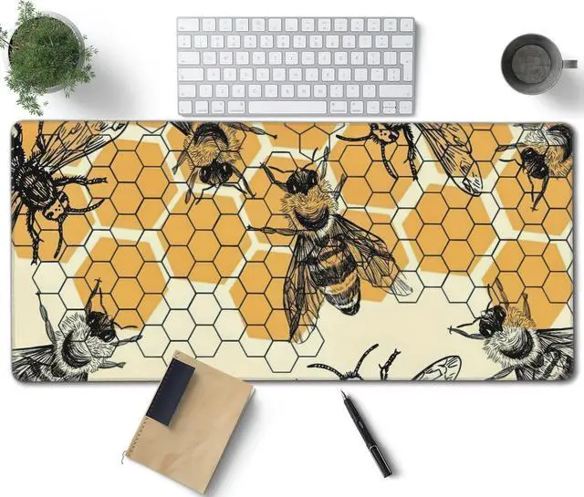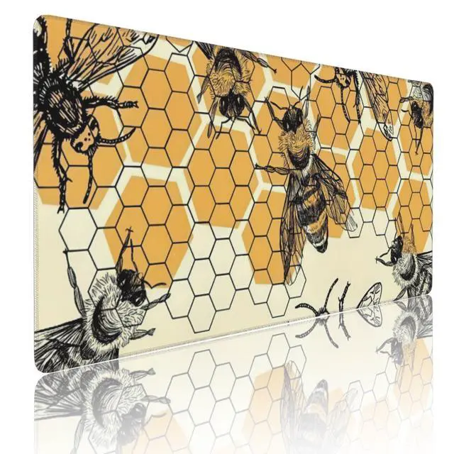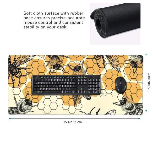 Bee and Honeycomb Large Mouse Pad, Vintage Aesthetic Gaming Desk Mat, XXL Keyboard Desk Pad Mat for Desktop, 35.4"x15.7" Non-Slip Base Big Mousepad with Stitched Edges